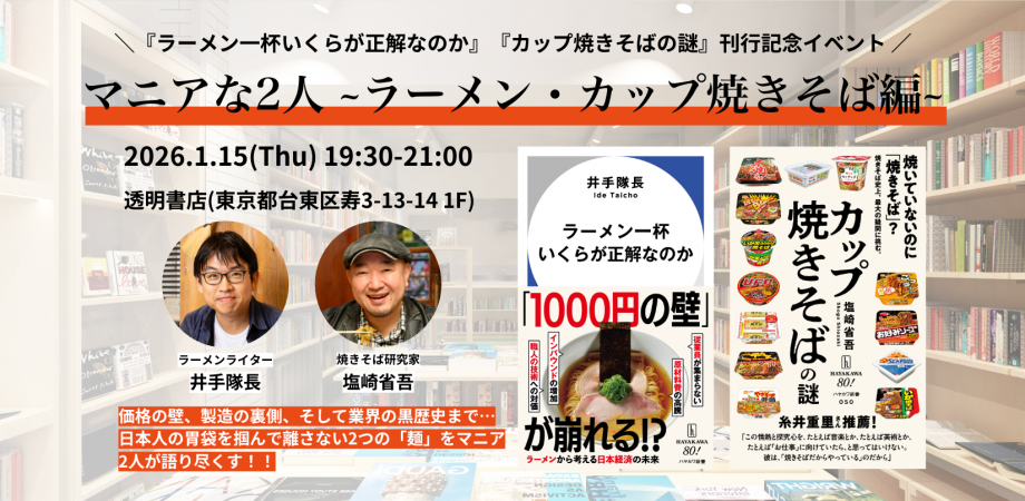 告知です! ハヤカワ新書『カップ焼きそばの謎』刊行を記念して、透明書店@蔵前にて、トークイベントを開催します!