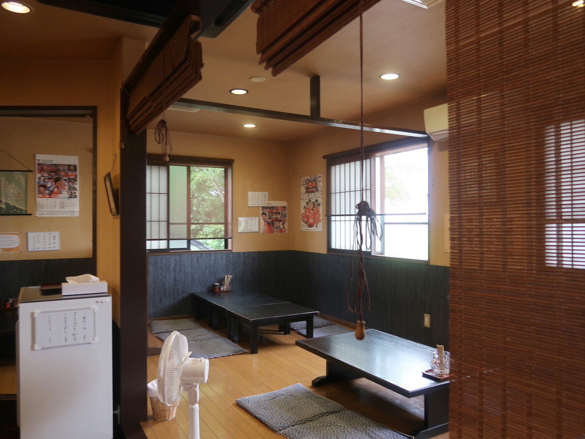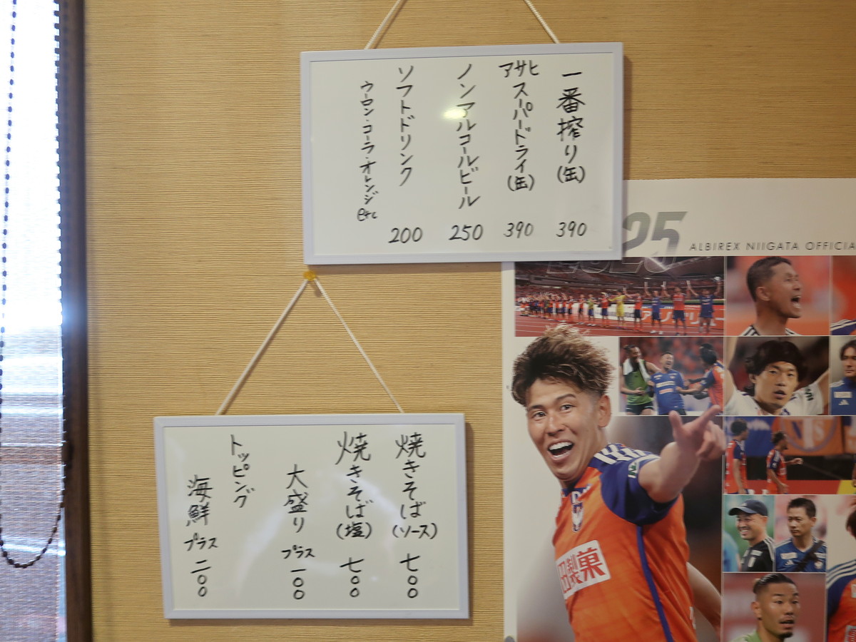 6月初旬、平日の昼過ぎに訪問。店舗の裏手には田んぼが広がっていて、それをバックに焼きそばの幟がはためいている。さすが、米どころ新潟。玄関で靴を脱ぎ、「ごぶさたしてます~」とご挨拶して入店。ちなみに川本さんは二度目の訪問らしい。