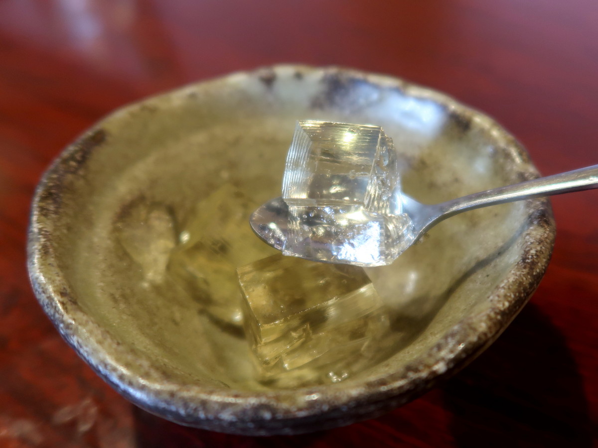 塩味も一口いただいたが、さっぱりした味わいでしみじみと美味しい。こちらの方を好む人も多いだろう。海鮮トッピングもエビやイカが贅沢に使われていた。食後は綾子さんのお手製ゼリーをデザートで出していただいた。お冷として出された麦茶もタンブラーにたっぷり入っていた。ホスピタリティ溢れるお店である。